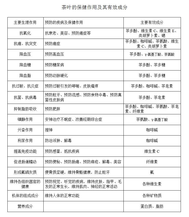 茶葉的保健作用及其有效成分