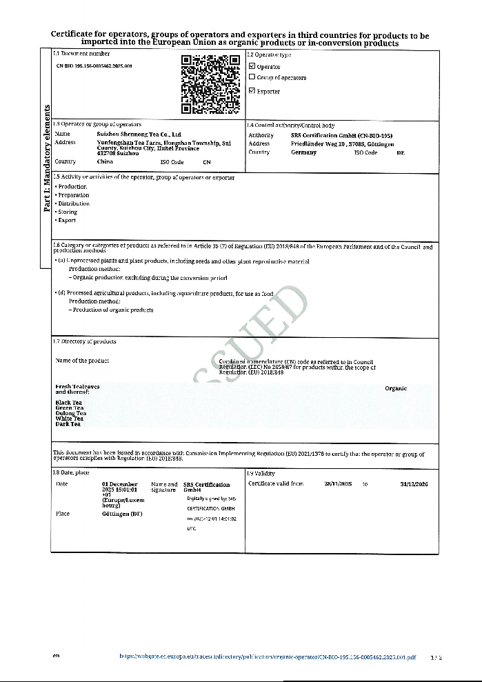 歐盟美國日本加拿大有機認證證書
